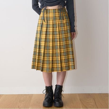 今季トレンドミディ丈プリーツスカート