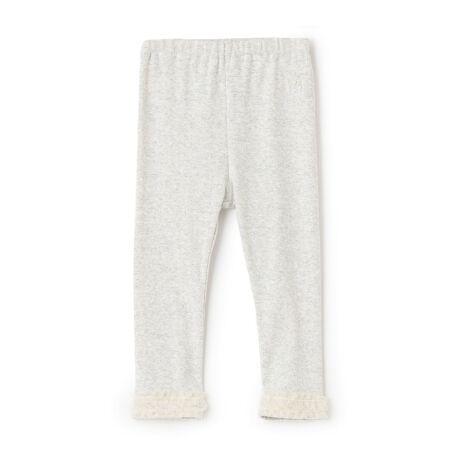 裾のチュールフリルがアクセントになったレギンスです。左ウエストにはさくらんぼを刺しゅうしました。日常に馴染むやさしい色合いもポイント。肌当たりの良いコットン100%生地なので、快適なはき心地です。内側にお名前を記入できるタグがついています。【おすすめの着用時期は秋冬シーズン】