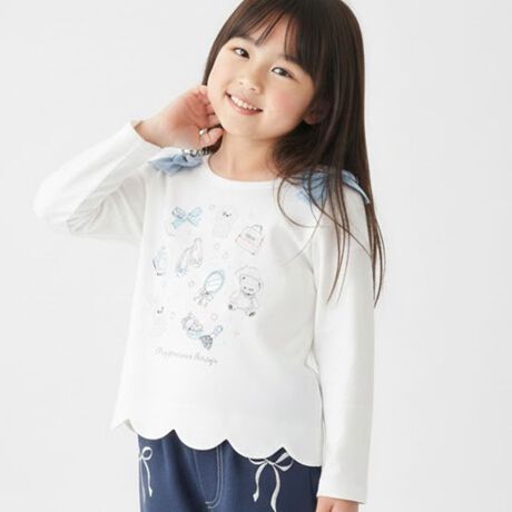 リボンをテーマにした女の子らしい長袖Tシャツです。