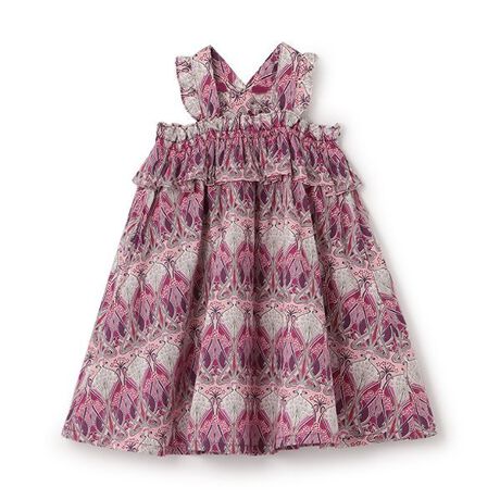 胸元のフリルと広がるAラインシルエットが女の子らしいデザイン。