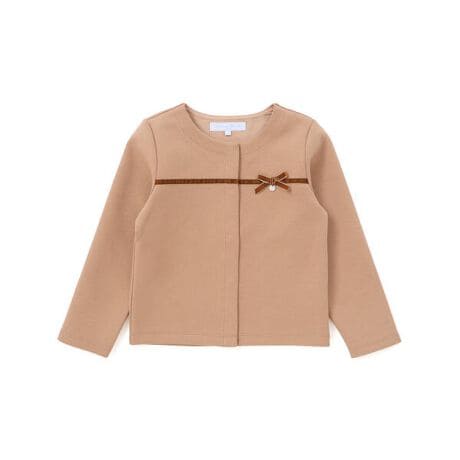 胸元のリボンがワンポイントの女の子用カーディガン。