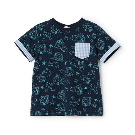 さまざまな格好のライオンをプリントした総柄Tシャツです。