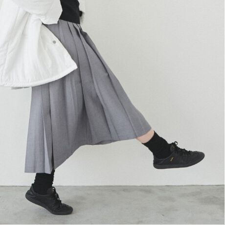 ・ミディ丈で、ウエストはスッキリと細見えシルエット。