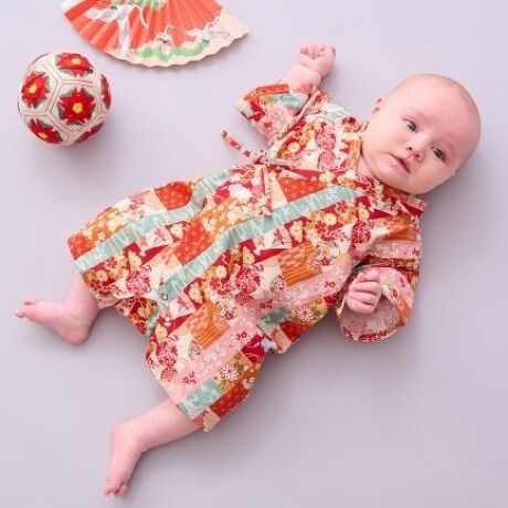 和柄をパッチワーク風に並べた甚平オールです。