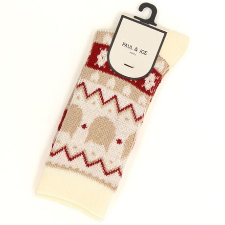 ポール&ジョー クルーソックス 猫シルエットフェアアイル柄