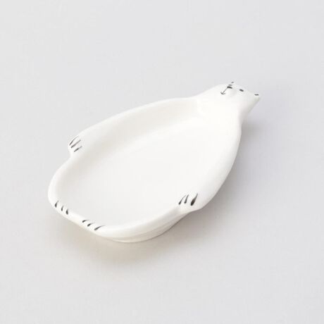 白い磁器に黒の釉薬でシンプルにデザインして、ぽってりとした丸い体に仕上げました。