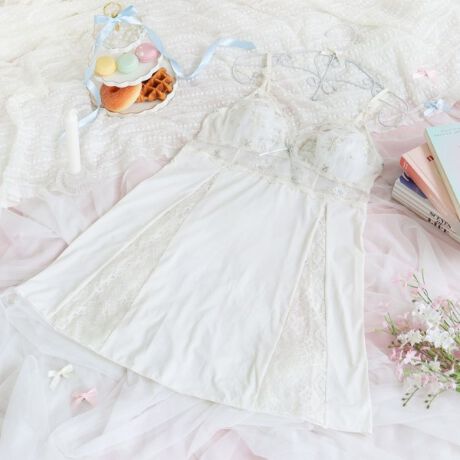 小花とアイシングクッキーの刺繍をミックスした、甘く可愛らしいシリーズです。アイシングクッキーの中にも小花柄をしのばせて、全体にやさしくきらめくラメ糸をあしらうことで、ガーリーな中にも上品さを演出。丸みのあるスカラップはボーラー手法をほどこし、手作りクッキーのようなイメージに仕上がりました。身生地から裾まで大きくV字カットしたレースを4ヶ所使用することで、おしゃれにスタイルアップ。カップ下には刺繍レースをあしらい、異なる透け感をお楽しみいただけます。ストラップにはクッキー型のアップリケを添えて、輝くラインストーンが華やかさをプラス。バスト中央には細めのリボンをあしらい、繊細な女の子らしい印象でまとめました。お菓子のようなカラーリングのランジェリーで、甘くときめく日常をお届けします。