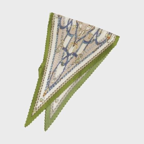 三角形のフォルムが巻きやすく首元・ヘア・バッグのアクセントにぴったり。