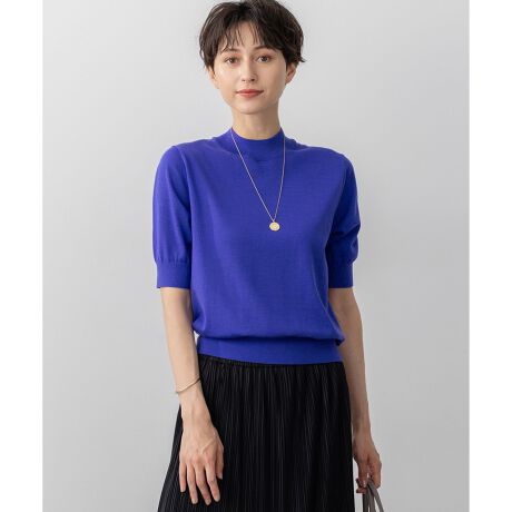 上質な素材が心地よい、モックネックの五分袖ニット。一枚で上品な着こなしはもちろん、秋のおしゃれ気分をさらに高めるアンサンブルでのシックな着こなしもおすすめです。ジャケットやカーディガンのインナーとしても活躍し、オフィスシーンから普段使いまで幅広く対応します。首元をすっきりと見せつつ、エレガントな印象を与えてくれる一枚です。長くご愛用いただける深みのあるベーシックカラーに加え、コーディネートのアクセントになる華やかなシーズナルカラーの4色展開。抜け感のあるライトグレー(#003)、パッと目を引くオレンジ(#020)、爽やかなブルー(#070)、洗練された印象のネイビー(#075)のカラーラインナップです。
