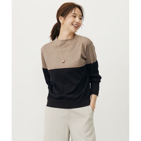 ■デザイン上品なモックネックが印象的なカラーブロッキングニット。ネックラインはやや高さを持たせて、顔周りをすっきりと見せつつ、華やかにしてくれます。カラー配色が程よいアクセントとなり、スタイリングを引き締める1枚に。ベーシックなボトムスやスカートに合わせるだけで着映えが叶い、オンオフにも活躍する、大人に嬉しいデザインニットです。