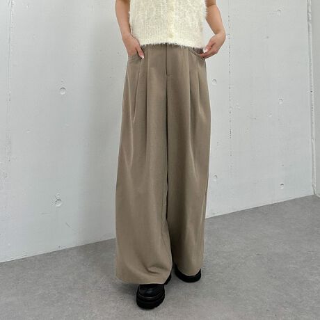 フロントに入ったタックが、立体感ときちんと感を演出するワイドスラックス。