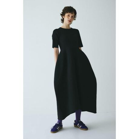 リブニットで上半身を仕立てたワンピーススカート部分の立体感がとても造形的です。1枚でスタイリングがモードに決まります。足元のチョイスで様々なテイストを楽しむことができます。マットなポリエステルの細い糸を多本取りし、ジャージのように編んだニット素材を使用しています。ボリュームニットドレス[注意事項] ※画像の商品はサンプルです。実際の商品と仕様、加工が若干異なる場合があります。 ※画像の商品は光の照射や角度、お使いのモニター環境により、実物と色味が異なる場合がございます。 ※着用、お取り扱いの際は、アテンションタグをご確認ください。