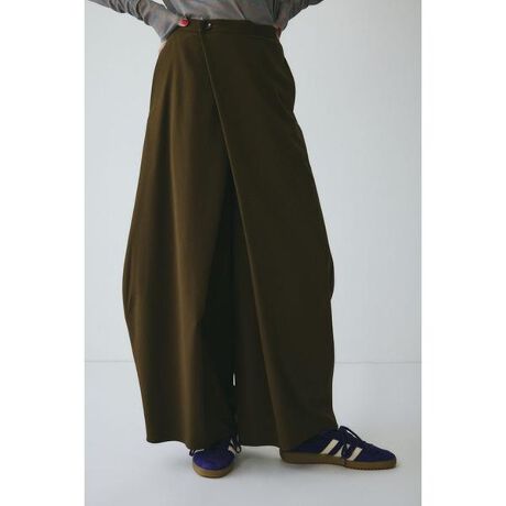 裾に向けて台形のような形になっているのがポイントのスカート見えするパンツハリのある生地を使用しているため、シルエットを綺麗に見せてくれます。綺麗目にもカジュアルにもコーディネートしていただけるアイテムです。中肉厚のプレーンな平織りの素材にややハリ感を持たせ、さらっとした心地よい風合いに仕上げられた素材です。ストレッチ性もあり着心地の良さも特徴です。ロングスカートパンツ[注意事項] ※画像の商品はサンプルです。実際の商品と仕様、加工が若干異なる場合があります。 ※画像の商品は光の照射や角度、お使いのモニター環境により、実物と色味が異なる場合がございます。 ※着用、お取り扱いの際は、アテンションタグをご確認ください。