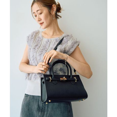 シボ感のある素材とゴールドパーツの組み合わせが高級感漂うレザーバッグ。
