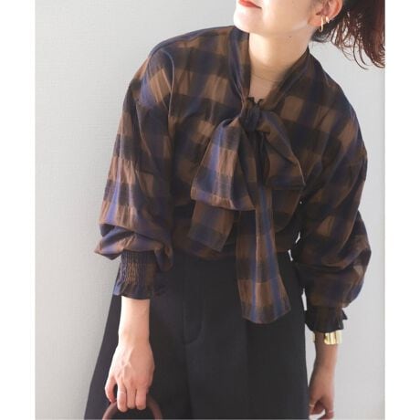 ほほんのり透け感と軽やかな風合いが魅力のオンブレ柄素材を使用したボウタイブラウス。