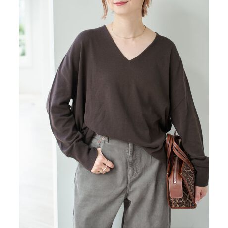 一枚でふんわりとした抜け感を演出するVネックプルオーバー。