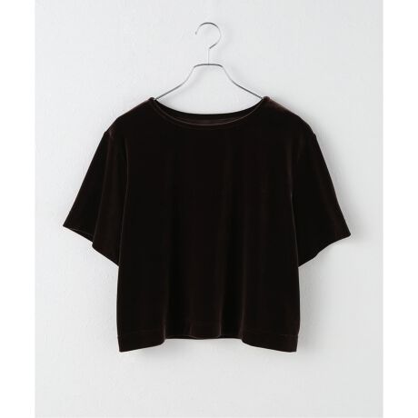 ベロア素材を贅沢に使用したTシルエットのプルオーバー。しっとりとした光沢が上品に輝き、程よい厚みで秋冬シーズンにぴったりの質感です。体のラインをさりげなくカバーする絶妙なシルエットが、大人の女性らしい優雅さと洗練された印象を引き立てます。