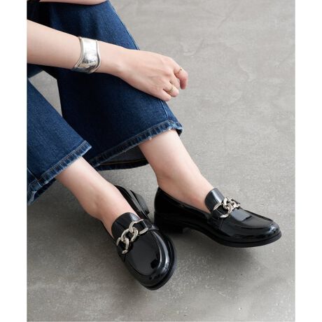 落ち着いたクラシックな雰囲気に、チェーンの輝きがおしゃれ心をくすぐる1足。