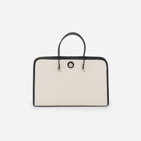 バッグ本体には、軽量でナチュラルな風合いが魅力の生成りツイル帆布を採用。