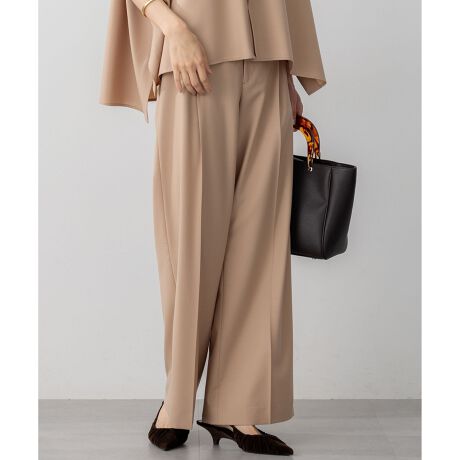 ワイドシルエットの1タックパンツは、穿いた時にきれいに見えるシルエットにこだわりました。フロントはすっきりと見せながらもタックを入れることで立体感を出し、腰回りの張り付きを軽減してくれます。ウエストの後ろ側はゴム仕様で穿き心地よく仕上げました。お仕事着からカジュアルまで幅広く着回せるアイテムです。同素材のジレやポンチョワイドシャツとのセットアップ対応も可能です。カラーは、上品でクラシカルなキャメル(#034)、こなれた印象のチャコール(#004)の2色展開です。