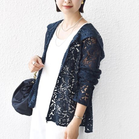 レースで品よく、軽やかに羽織れる透け感パーカ