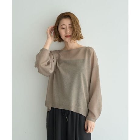 トレンド感溢れるシアー素材で仕立てたニットプルオーバー。さらりと肌触りの良い素材で、暑い季節にも快適に着用いただけます。透け感を活かして色柄物インナーとのレイヤードを楽しむのもおすすめ。合わせ方次第でロングシーズン活躍します。