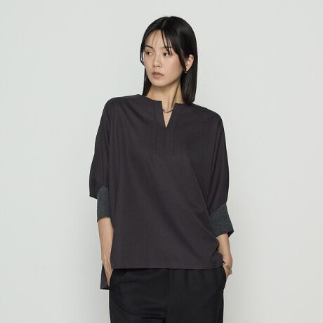 スキッパーカラーで大人の抜け感があり、すっきりとした印象です。