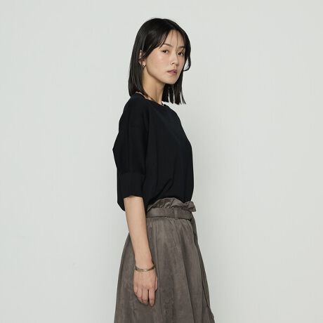 滑らかな肌触りと柔らかさがあり、ハイゲージのきれいめな天竺で仕上げているので上品な光沢感があります。