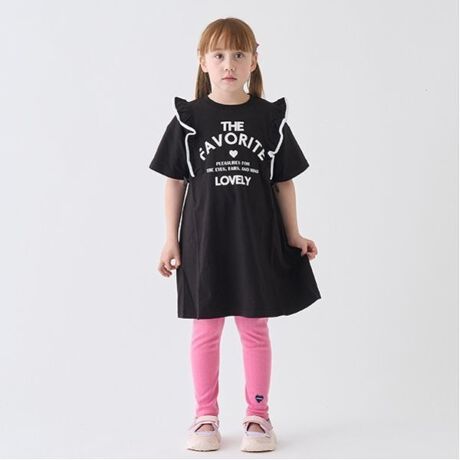 フロントのフリルが可愛らしいTシャツ風ワンピースです。