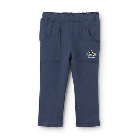 前ポケットに重機&ロゴ刺しゅう、後ろポケットに工具柄の織りネームをつけてデザイン性をアップ。
