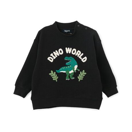 恐竜をモチーフにしたやさしい風合いのサガラ刺しゅうが可愛らしいトレーナーです。