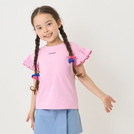 暑い季節もひんやり快適な接触冷感素材を使用したフリル袖Tシャツです。
