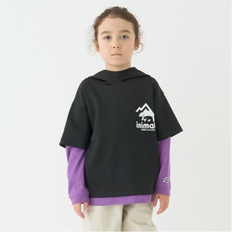 Tシャツの上に重ねたようなレイヤードデザインがおしゃれ。