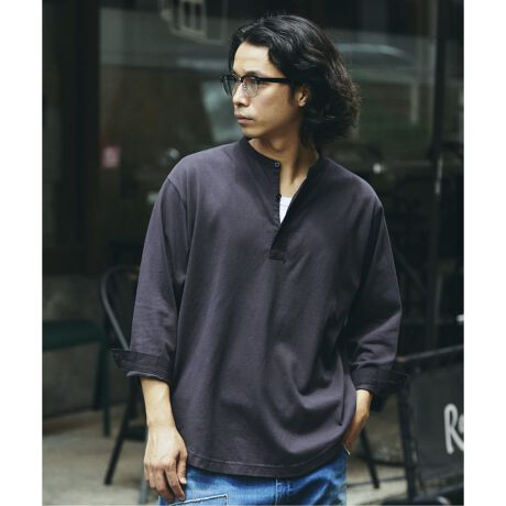 ワードローブの定番として活躍すること間違いなしの、ヘンリーネックカットソーです。