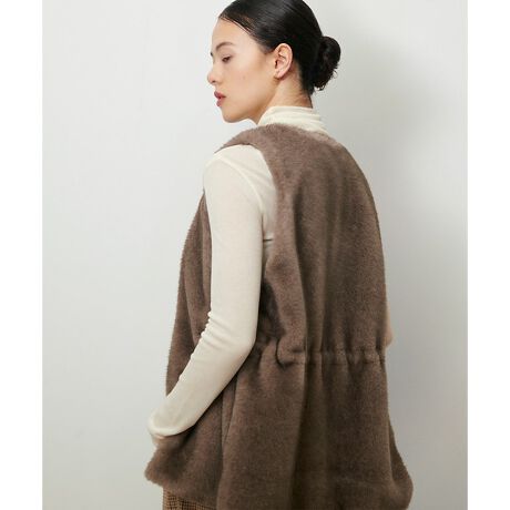 リアルミンクのような光沢感と手ざわりが魅力のフェイクファージレ。ウエスト内側のドローストリングで、くびれシルエットにもアレンジ可能です。