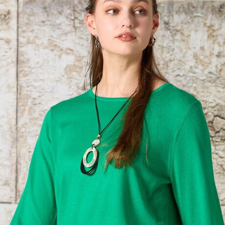シンプルな着こなしにもマッチする落ち着きのあるホーンネックレス。