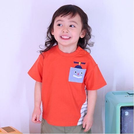 ロボット型のダンガリーポケットが印象的な半袖Tシャツです。