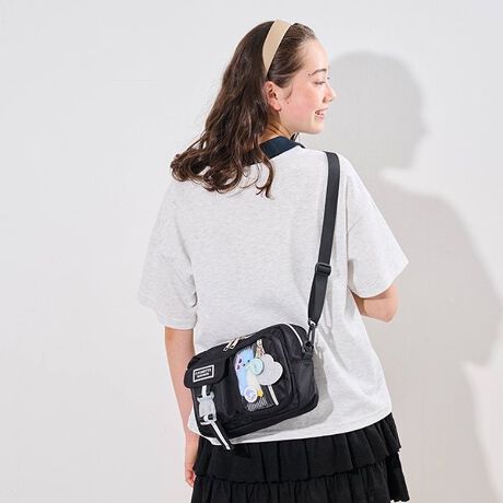 フロントのダブルポケットがトレンド感のあるショルダーバッグです。ラメ入りのハート型チャームつきで、可愛らしいアクセントをプラス。内側や後ろにもポケットを完備しており、小物を分けて入れられます。肩紐はお好みの長さに調整が可能です。