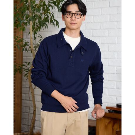 ポロシャツのような襟が付いたユニークな首元が特徴的なハーフスナップスウェットです。襟付きのためスウェットながらクリーンな印象を演出します。チンストラップ付きで襟を立てることもできます。デザインは80〜90年代のビンテージをモチーフにしていますが、当時にはない柔らかいダブルフェイス生地で表現しました。