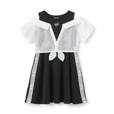 シアーシャツを重ね着したようなドッキングワンピースです。
