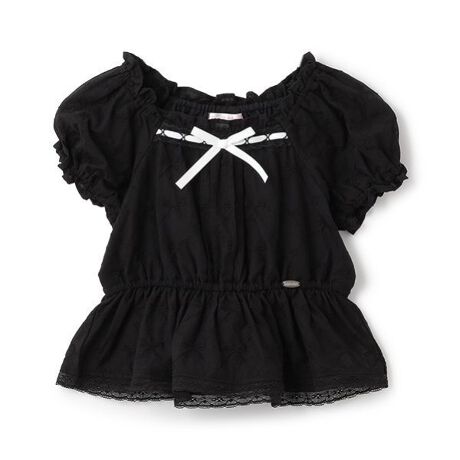 リボン柄のレース生地で可愛く仕上げたブラウスです。