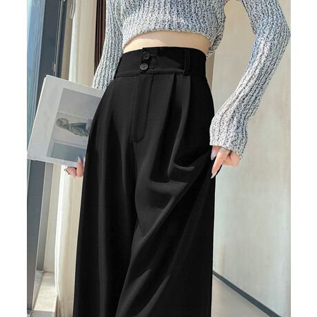 ダブルボタンがアクセントになり、バックゴム仕様でラクな穿き心地。