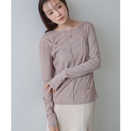 レイヤード風デザインが目を惹くアシメレイヤードカットソー。1枚でカットソーにキャミソールを重ねたようなデザインで、手軽にこなれ感のあるスタイルを楽しめます。キャミ部分は非対称的なカッティングで、さりげなくトレンド感をプラス。右下にあしらわれた小さなBabプレートもアクセントになり、シンプルながら存在感のある1枚に仕上げました。ポリエステル×レーヨンの落ち感のある素材で、さらりとした着心地も魅力。1枚で主役としてはもちろん、ジャケットやカーディガンのインナーとしても活躍します。