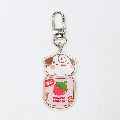 マフィンコーナーとは、中国から来たマフィンカフェの住人達です。食べることが大好きで、それぞれ個性のある優しいキャラクターになっています。こちらはコンビニ商品をモチーフとしたコンビニシリーズのアクリルキーホルダーです。缶ジュースにぎゅむぎゅむ入っている姿がキュート!!フック部分も付けやすいデザインで、バッグに付けやすくて嬉しい!