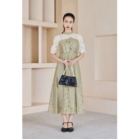 胸元は結び目のようなノットデザインでひと癖プラスしました。