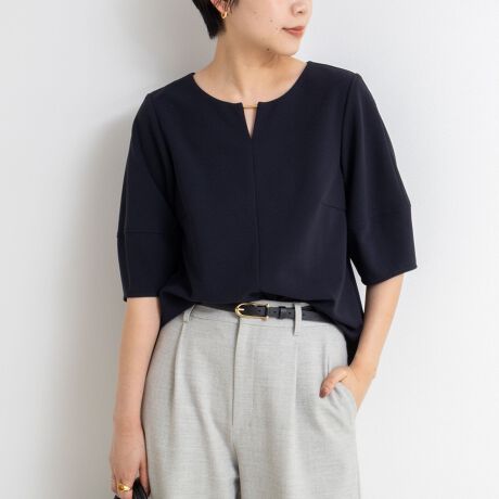 ・ジョーゼット組織のカットソー素材を使用した5分袖ブラウス