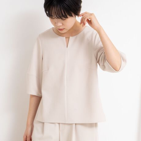 ・ジョーゼット組織のカットソー素材を使用した5分袖ブラウス
