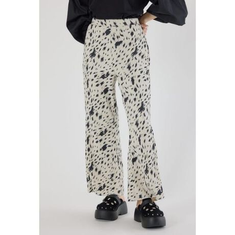 ■ポイントアソートになったアニマル柄が目を惹くプリーツパンツです。落ち着いた配色で、様々なコーディネートに合わせやすいのもおすすめポイントです。■ディテールトレンドのフレアシルエットで、ウエストは平スピンドル入りのゴム仕様になっています。軽やかな穿き心地で動きやすく、どんな場面でもストレスフリーに着用いただけます。オリジナル総柄プリントです。■スタイリングラフにTEEシャツを合わせるだけでもコーディネートが決まります。シャツやブラウスと合わせると大人フェミニンなコーディネートが完成します。■生地ポリエステル起毛総柄プリント生地にプリーツ加工を施しています。伸縮性があり、穿き心地の良いクオリティ使用。着用により、プリーツ加工が甘くなる可能性がございます。柄BLKにおきまして、色差が生じていることが確認されております。本製品は毛並みのある生地を使用しているため、光の当たり具合や見る角度によって色味が異なって見える場合がございます。製品の特性としてご理解いただきますようお願いいたします。■透け感:なし■裏 地:なし■伸縮性:あり■光沢感:なし[注意事項]※画像の商品はサンプルです。実際の商品と仕様、加工が若干異なる場合があります。※画像の商品は光の照射や角度、お使いのモニター環境により、実物と色味が異なる場合がございます。※着用、お取り扱いの際は、アテンションタグをご確認ください。