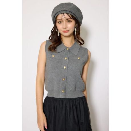 ノースリゴールドボタンニットトップス