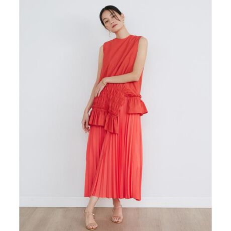素材を上下変えることで、ブラウスセットアップの様に見える夏にお勧めワンピースです。プリーツデザインが目を惹き、カジュアルスタイルになりがちな夏に華やかさを演出してくれる優秀な1枚です。体にフィットしすぎないサイズ感でシャープな見た目ながら楽な着心地。シャーリングによって出来る立体シルエットが大人の女性の優しい雰囲気をしっかりと醸し出すワンピースです。・上身頃裏地あり・ペチコートあり■サンプル撮影商品■こちらの商品はサンプルでの撮影となっております。実際の商品とは、サイズや色味、素材、デザイン等の仕様が若干変更になる場合がございます。■カラーについては、可能な限り実際の商品に近いカラーにて撮影をおこなっておりますが、照明の関係により実際の製品とは色味が違って見える場合があります。またパソコン・スマートフォンなどの環境により、若干製品と画像のカラーが異なる場合もございます。現物と画像のカラー差異については返品理由となりませんので、予めご了承ください。■サイズ表記はあくまで目安となります。